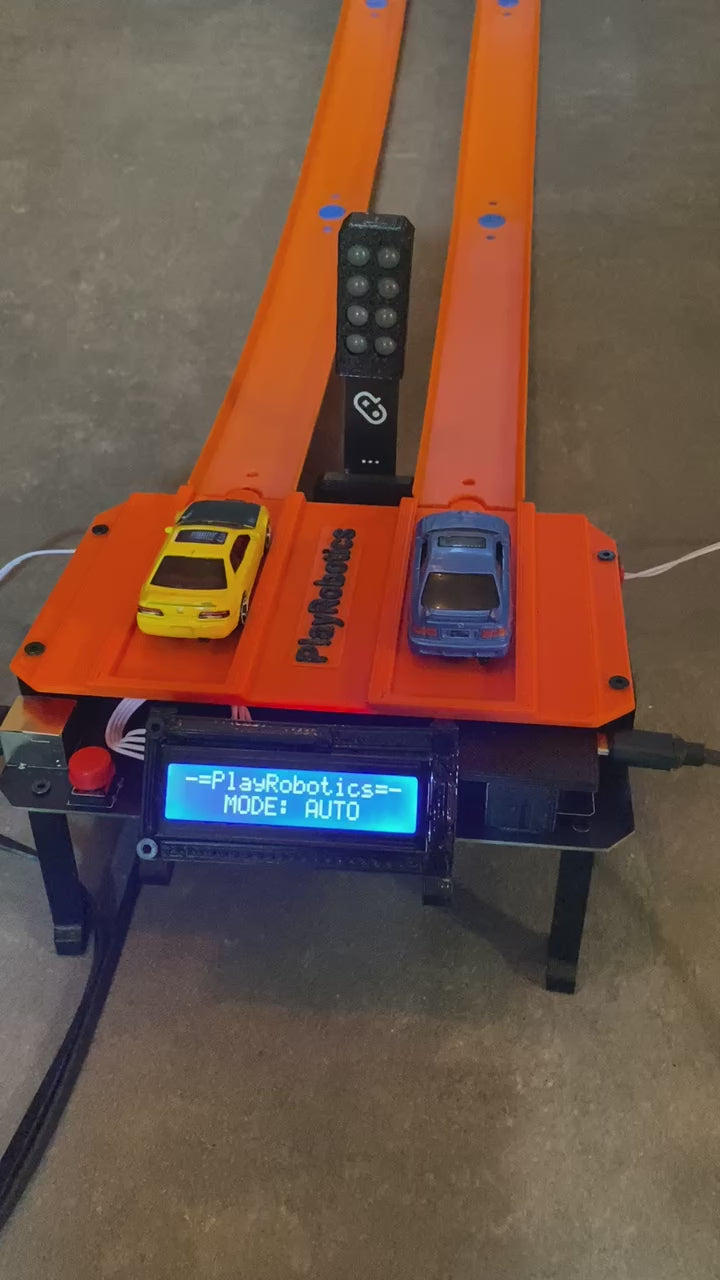 In this mode the finish line will show the time it took for each car to complete the race, but the blue LCD located at the start gate will show the reaction time of each player.