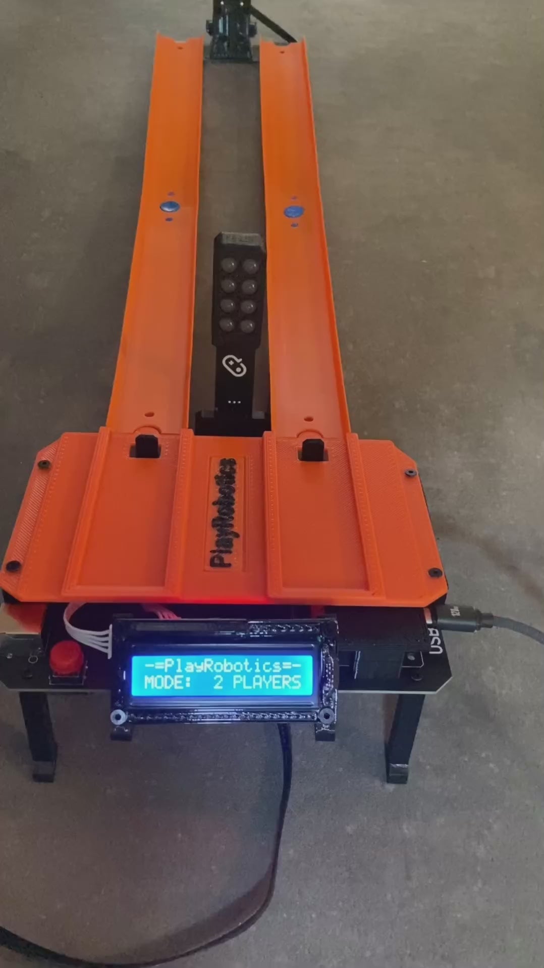The blue LCD screen will show the reaction time of both players (human and AI).