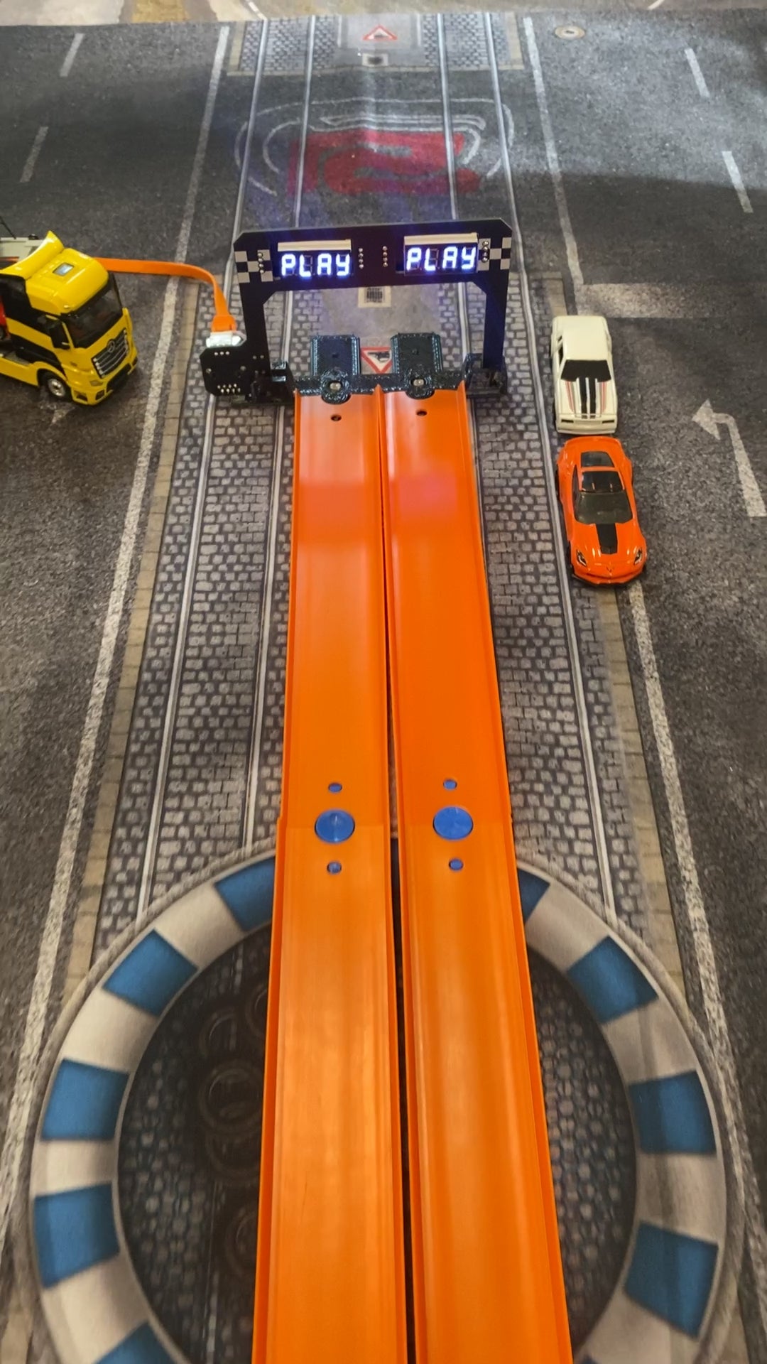 FAT Track users: The start gate can be connected to the FAT track directly, or alternatively you can connect the start gate to HotWheels orange tracks and then use the included 3d printed adapters to transition the orange tracks into the FAT track.