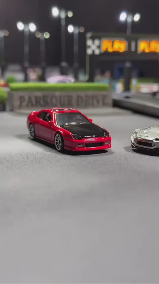 The kit comes with a ramp that can hold two cars, but in addition you can also choose to purchase 4 cars ramp which can hold 4 cars (2 cars on each lane).
